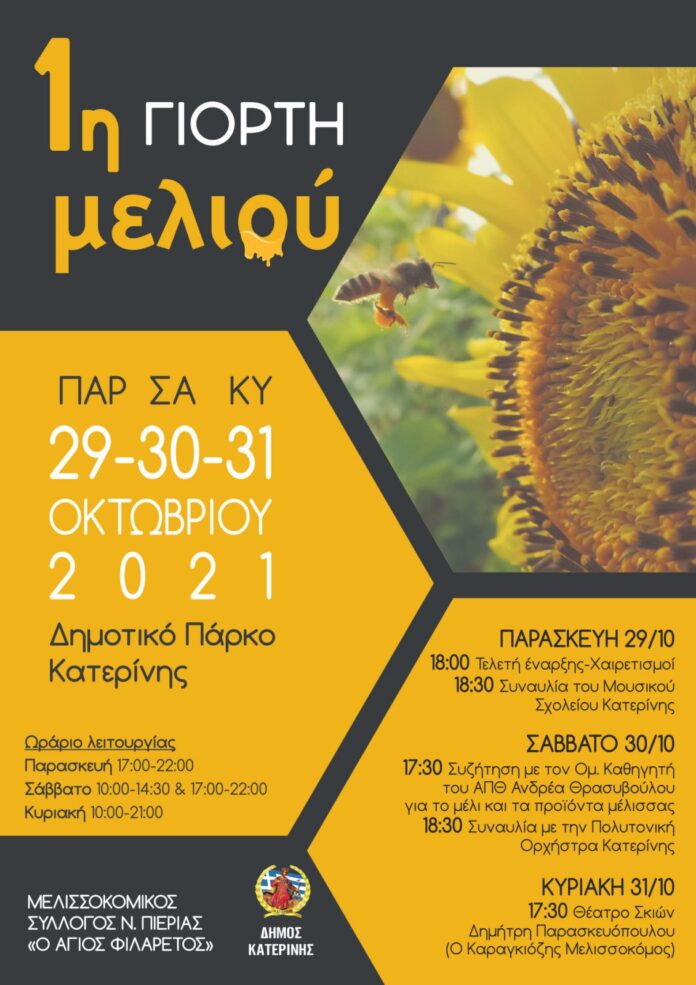 1η Γιορτή Μελιού από τον μελισσοκομικό σύλλογο Ν. Πιερίας «Ο Άγιος Φιλάρετος» και τον Δήμο Κατερίνης