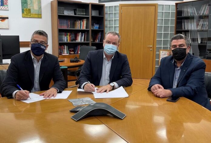Μνημόνιο Συνεργασίας συνυπέγραψαν σήμερα στη Θεσσαλονίκη, ο Δήμαρχος Κατερίνης Κώστας Κουκοδήμος και ο Διευθυντής της Κεντρικής Διεύθυνσης – Πρόεδρος του Διοικητικού Συμβουλίου του Εθνικού Κέντρου Έρευνας και Τεχνολογικής Ανάπτυξης (ΕΚΕΤΑ) Δημήτριος Τζοβάρας, παρουσία του Αντιδημάρχου Τοπικής Ανάπτυξης & Προγραμματισμού Σταύρου Χριστοφορίδη και του Ειδικού Επιστήμονα του Δήμου Κατερίνης Σάββα Ρογκότη.