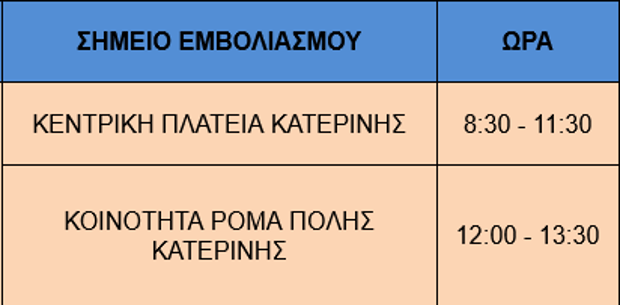 Κατερίνη: Κινητή μονάδα για εμβολιασμό στην Κεντρική Πλατεία και στην Κοινότητα Ρομά