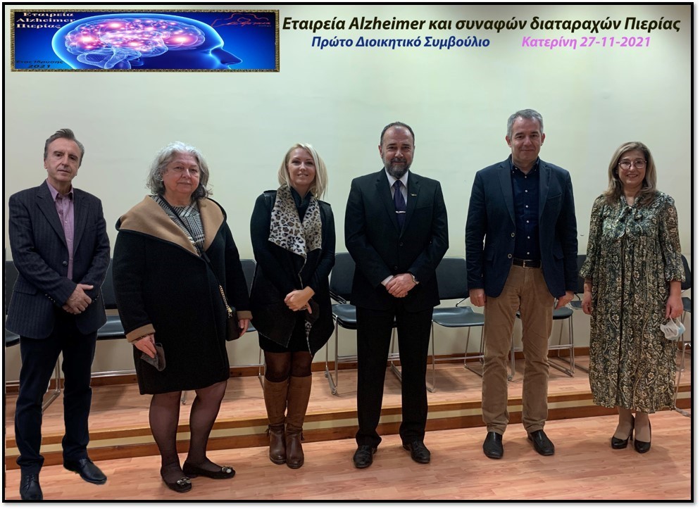 Πραγματοποιήθηκε το Σάββατο 27 Νοεμβρίου 2021 στην αίθουσα Συνεδριάσεων της Αντιπεριφέρειας Πιερίας η πρώτη Γενική Συνέλευση των 33 Ιδρυτικών μελών και 5 νέων μελών για την ανάδειξη του Διοικητικού Συμβουλίου της υπό ίδρυση Εταιρείας Alzheimer και συναφών διαταραχών Πιερίας.