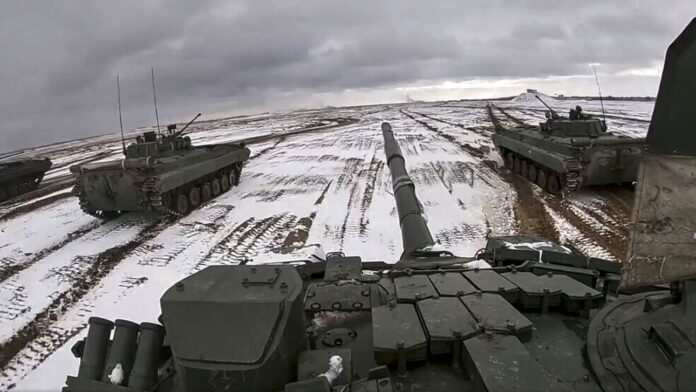 Η Ρωσία αρνείται ότι προτίθεται να εισβάλει στην Ουκρανία, έχοντας όμως περικυκλώσει την Ουκρανία με στρατεύματα κατά μήκος του κοινού συνόρου των δύο χωρών και στη Λευκορωσία, ενώ από θαλάσσης ο ρωσικός στόλος πλέει στη Μαύρη Θάλασσα ανοικτά των ακτών της Ουκρανίας.