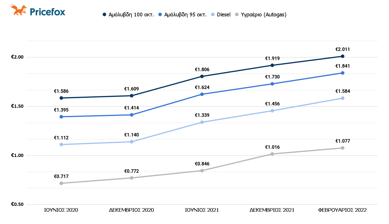 Η έρευνα που πραγματοποίησε το Pricefox.gr, η ελληνική startup που προσφέρει online σύγκριση σε τιμές και καλύψεις για ασφάλεια αυτοκινήτου, παρουσιάζει την αύξηση στις τιμές των καυσίμων από το 2020 έως σήμερα στην Πιερία με στοιχεία του Υπουργείου Ανάπτυξης και Ανταγωνιστικότητας.