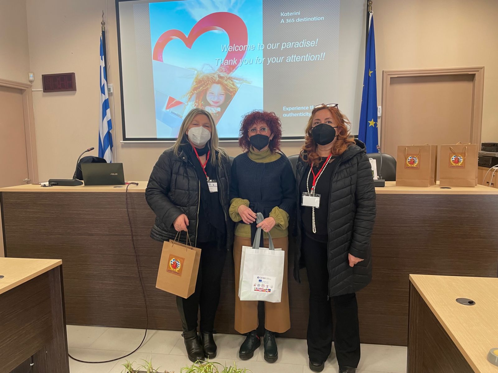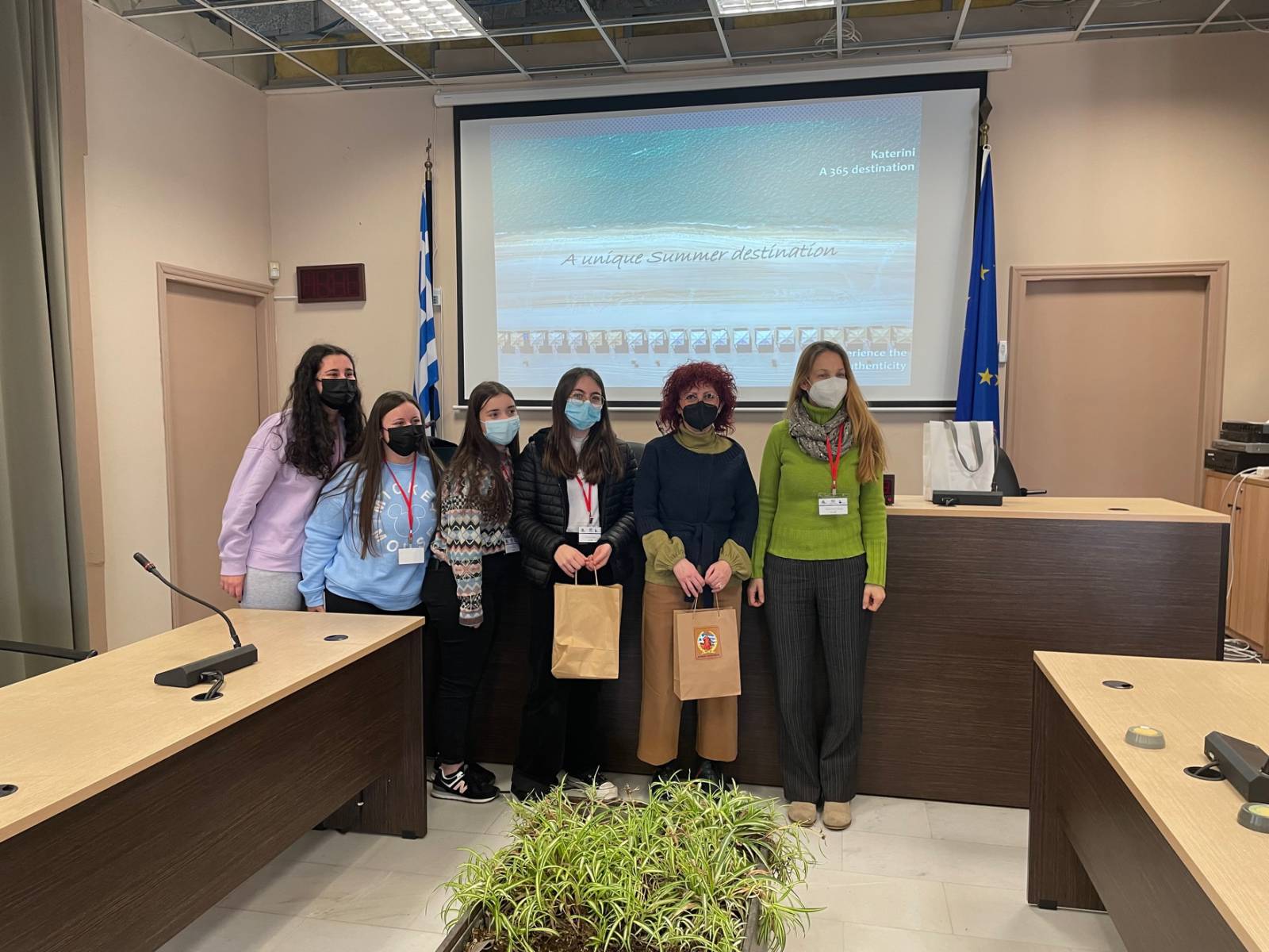 Εκ μέρους της δημοτικής αρχής, τις αποστολές υποδέχτηκε η αντιδήμαρχος Τουρισμού Μαρία Τερζίδου, η οποία αφού μετέφερε το χαιρετισμό του Δημάρχου Κατερίνης Κώστα Κουκοδήμου, συνεχάρη εκπαιδευτικούς και μαθητές, ενώ έκανε λόγο για την σπουδαιότητα των προγραμμάτων και των δράσεων που αναπτύσσονται από την «πλατφόρμα της Ευρωπαϊκής σχολικής κοινότητας».