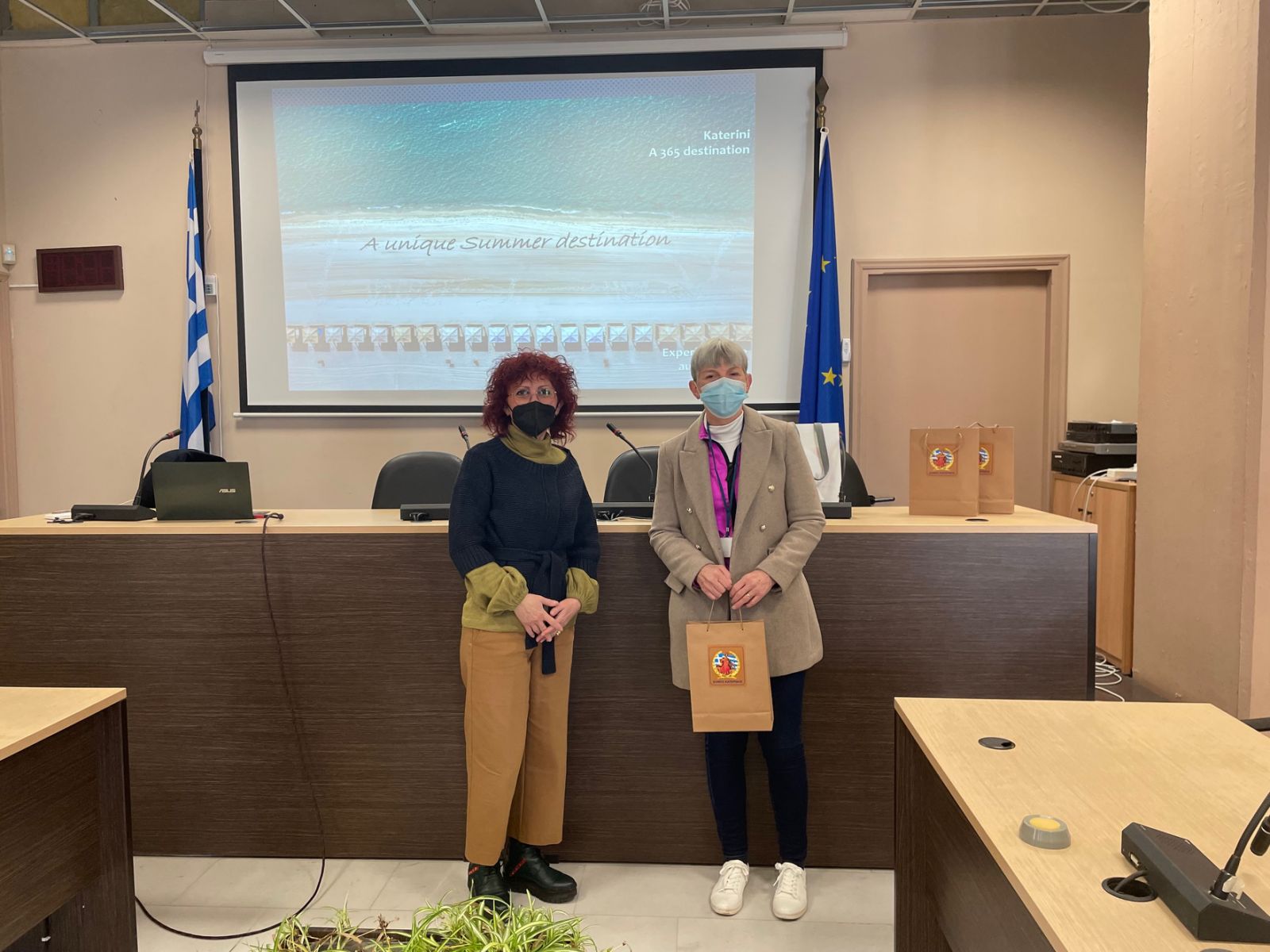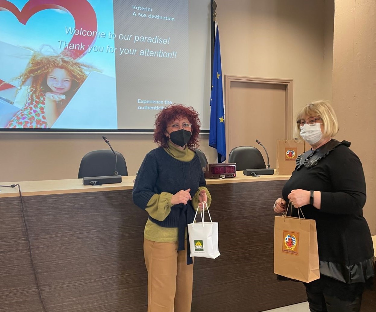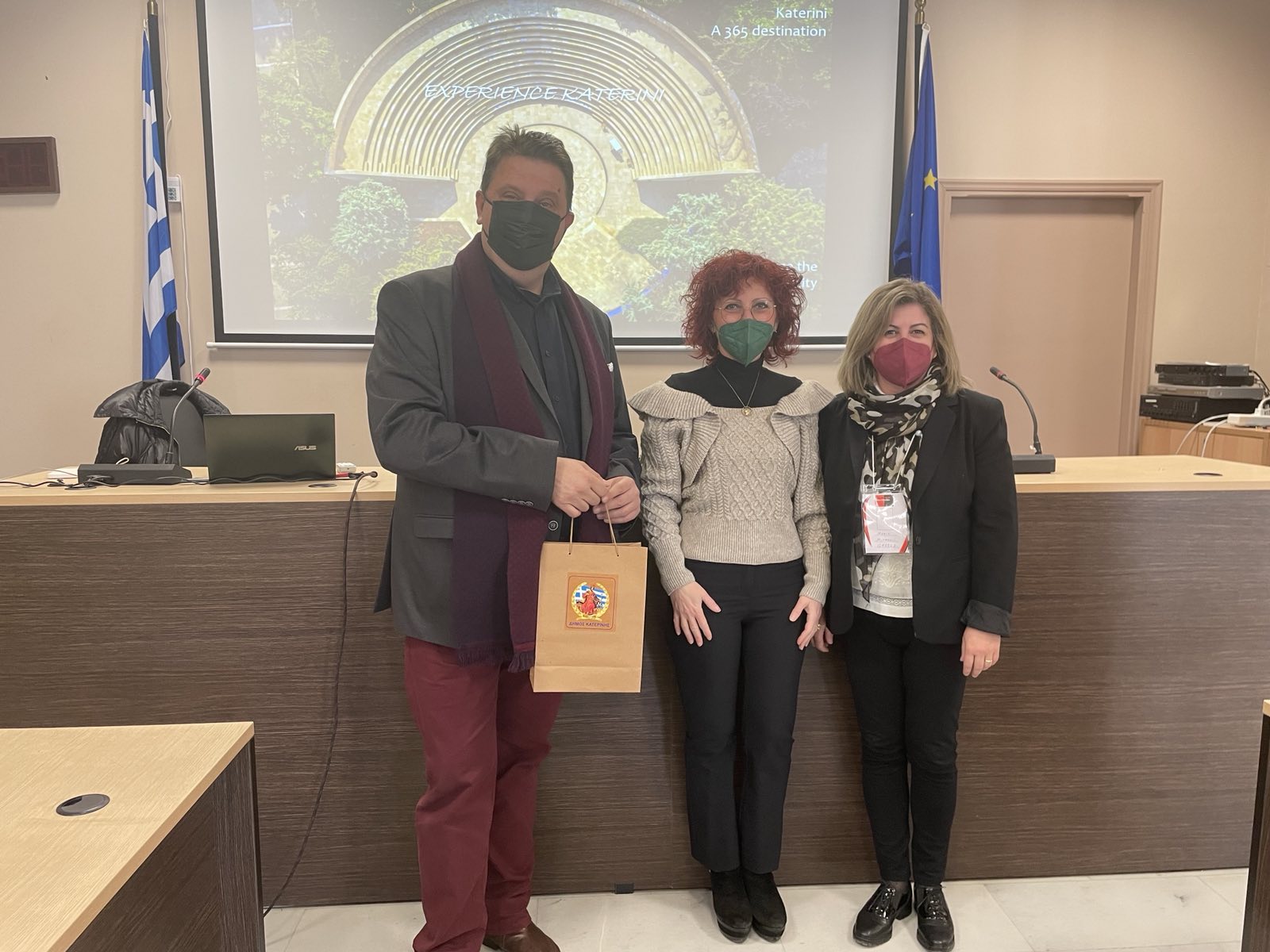 Παράλληλα, παρουσίασε σύντομα videos για τις πρωτοβουλίες ενδυνάμωσης του τουριστικού brand μέσω του «Experience Katerini» και μέσω της περαιτέρω ανάδειξης των συγκριτικών πλεονεκτημάτων της περιοχής.