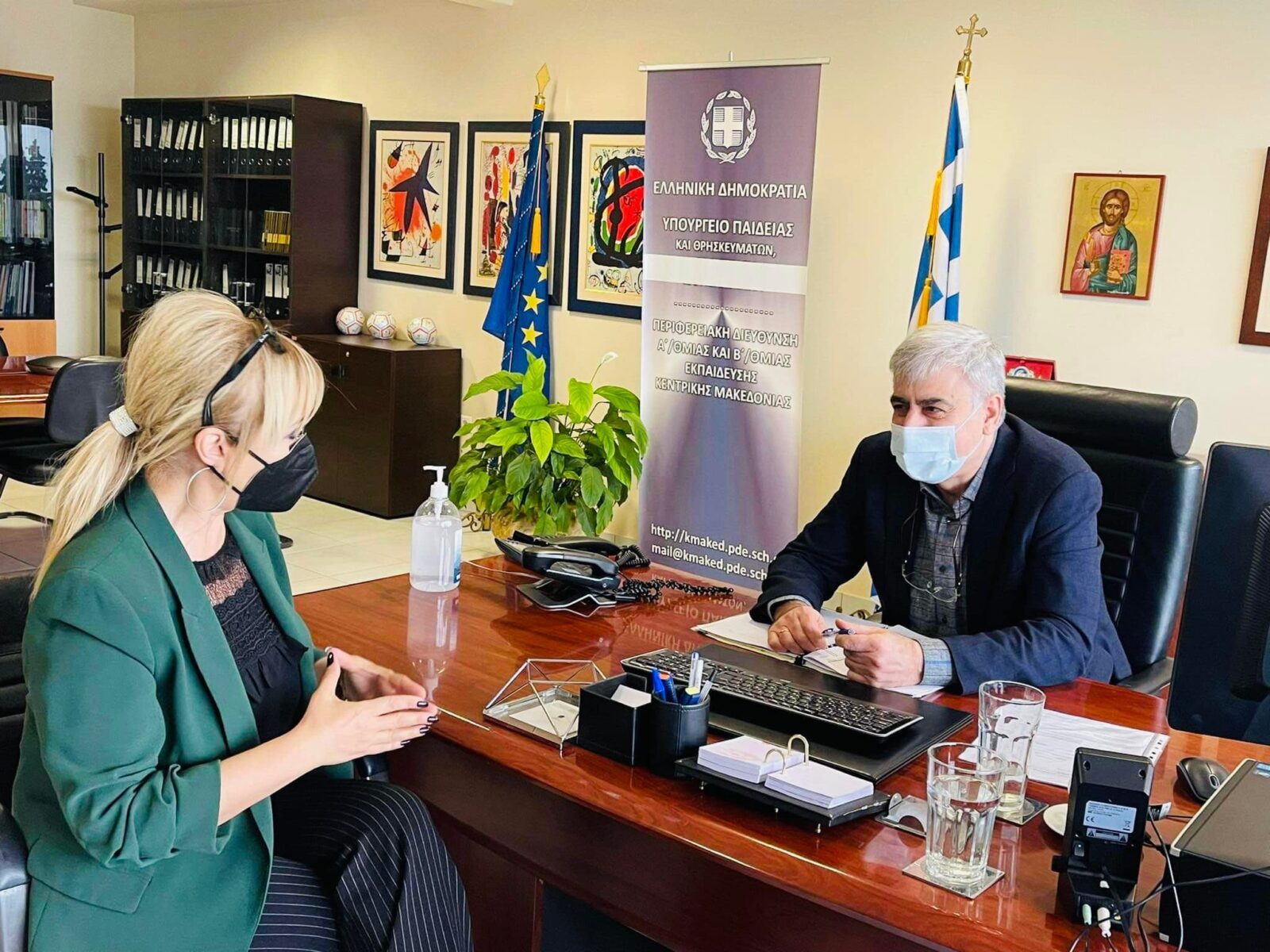 Τη Δευτέρα, 18 Απριλίου 2022, η Αντιπεριφερειάρχης Πιερίας, κα Σοφία Μαυρίδου, συναντήθηκε με τον Περιφερειακό Διευθυντή Πρωτοβάθμιας και Δευτεροβάθμιας Εκπαίδευσης Κεντρικής Μακεδονίας, κο Θωμά Μπαχαράκη στο γραφείο του.