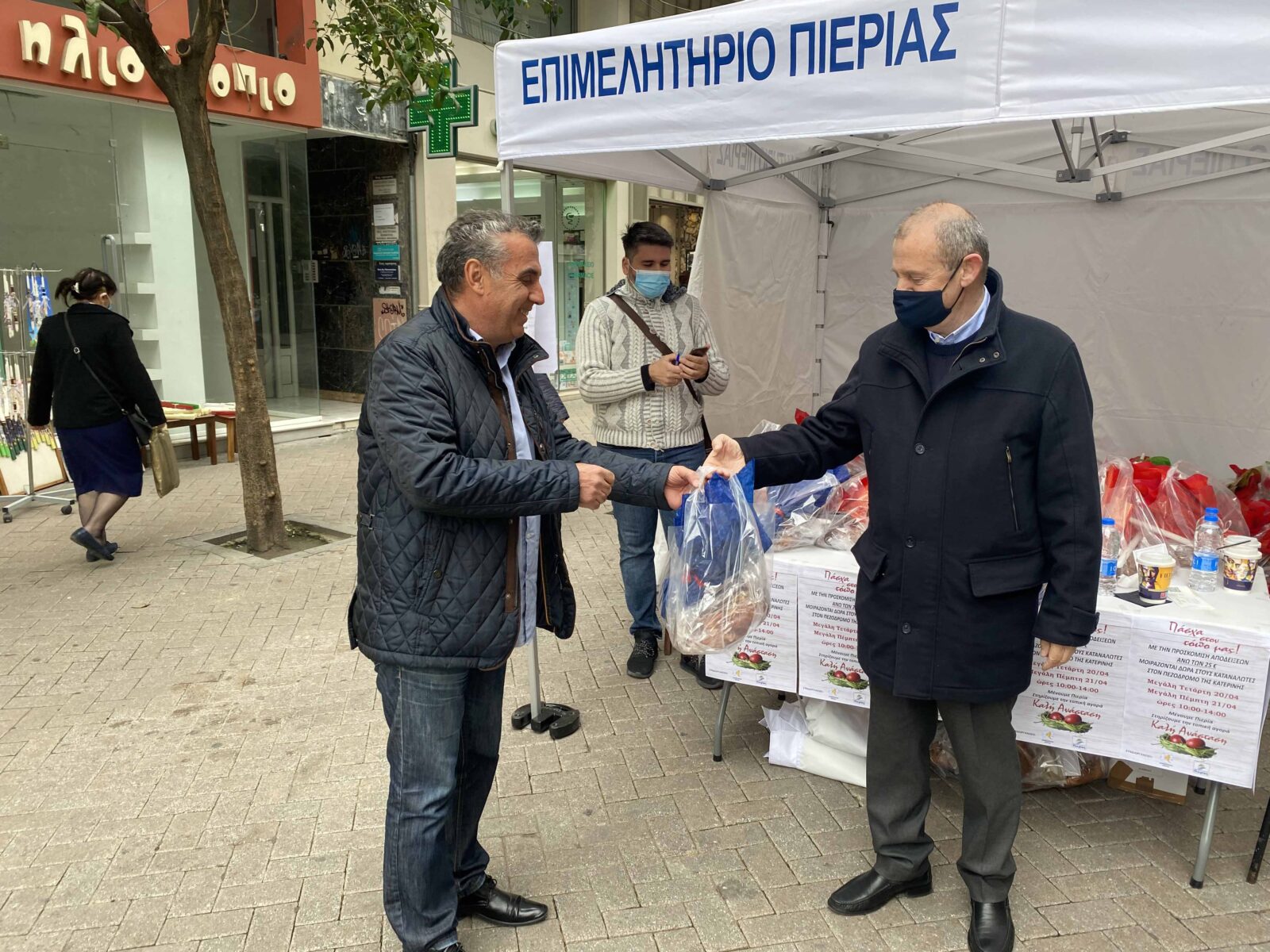 Τσουρέκι, λαμπάδα και σοκολατένιο αυγό περιείχε το δώρο που πρόσφεραν από κοινού το Επιμελητήριο και η Π.Ε Πιερίας σε όσους προσκόμιζαν αποδείξεις άνω των 25 ευρώ, από τις αγορές τους, στα καταστήματα της Πιερίας, στο ειδικό περίπτερο που είχε στηθεί στον κεντρικό πεζόδρομο της Κατερίνης τη Μ. Τετάρτη και τη Μ. Πέμπτη.