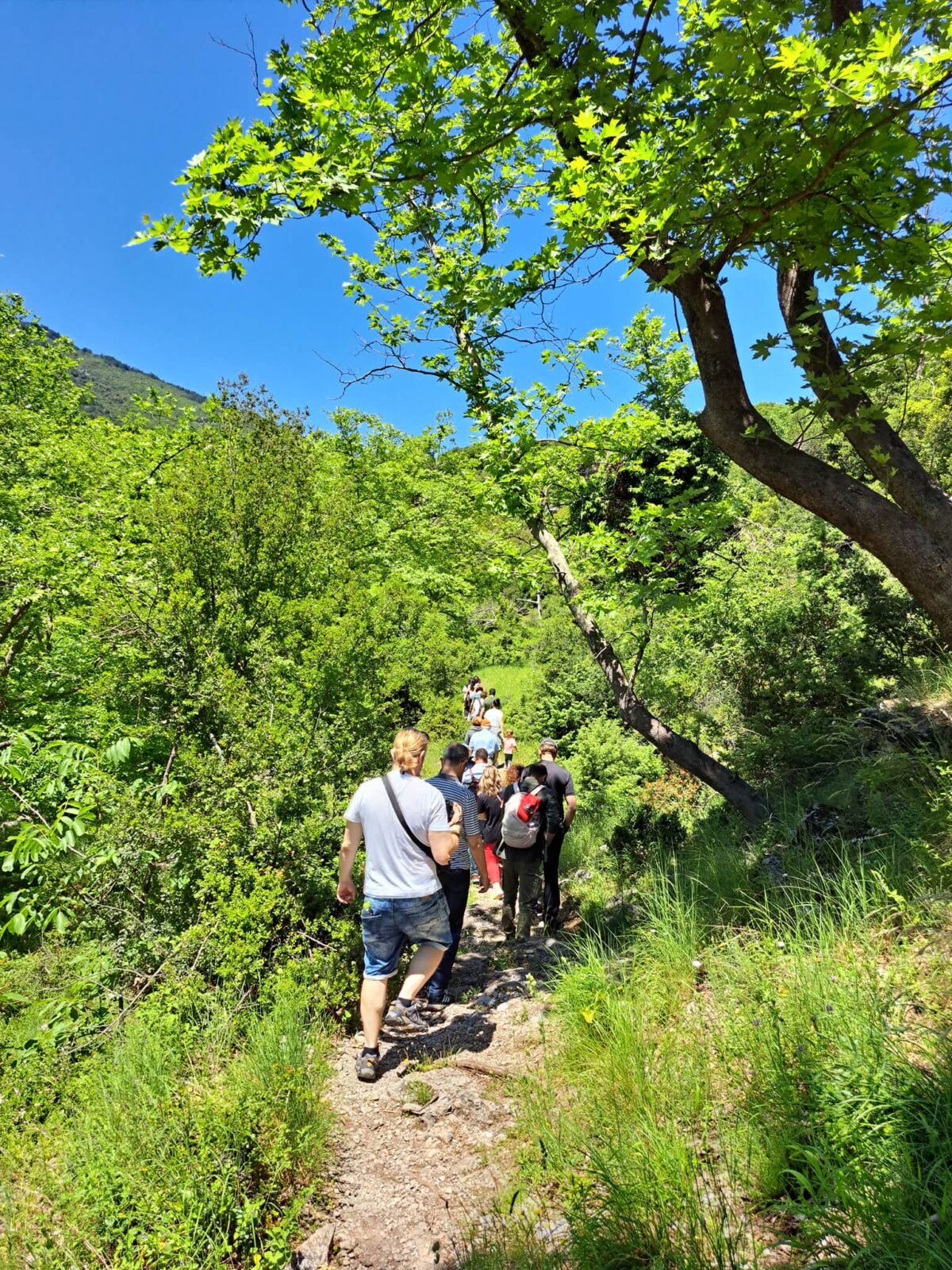Στη συνέχεια πραγματοποιήθηκε πεζοπορία και ξενάγηση εντός της περιοχής Natura σε μονοπάτι κοντά στο Λιτόχωρο και οι συμμετέχοντες είχαν τη δυνατότητα να γνωρίσουν το βουνό δια ζώσης. Εμπλούτισαν τις βοτανολογικές τους γνώσεις, άκουσαν καλέσματα πτηνών και ενημερώθηκαν για το πολυσήμαντο φυσικό περιβάλλον του Ολύμπου τις οικολογικές του αξίες.