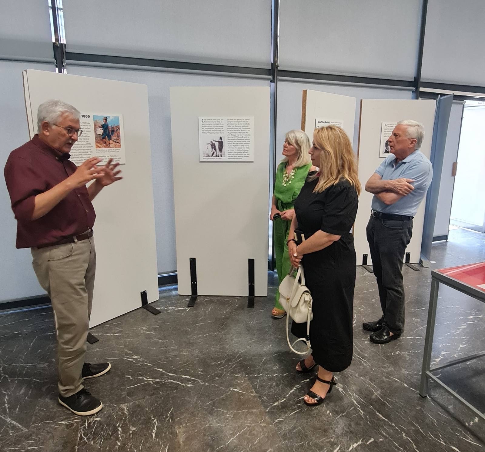 Η κυρία Μάνη ξεναγήθηκε στην έκθεση από τον ομότιμο καθηγητή Α.Π.Θ., κ. Ευάγγελο Λιβιεράτο, μέλος της ερευνητικής ομάδας του προγράμματος DiLiMAPS, ο οποίος επισήμανε τη σπουδαιότητα του δεκαπεντάφυλλου χάρτη καθώς και σημαντικές λεπτομέρειές του. Η έκθεση διοργανώνεται από τη Βιβλιοθήκη & Κέντρο Πληροφόρησης Α.Π.Θ. σε συνεργασία με το Εργαστήριο Χαρτογραφίας και Γεωγραφικής Ανάλυσης Α.Π.Θ. (CartoGeoLab Α.Π.Θ.), στο πλαίσιο του ερευνητικού προγράμματος DiLiMAPS και με τη χρηματοδότηση του Ελληνικού Ιδρύματος Έρευνας και Καινοτομίας (ΕΛΙΔΕΚ).