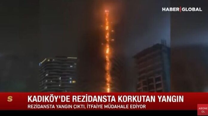 Στις φλόγες τυλίχθηκε το βράδυ του Σαββάτου ουρανοξύστης στη συνοικία της Χαλκηδόνας στην Κωνσταντινούπολη. Ισχυρή δύναμη της πυροσβεστικής δίνει μάχη για την κατάσβεση της μεγάλης πυρκαγιάς στον ουρανοξύστη 24 ορόφων.