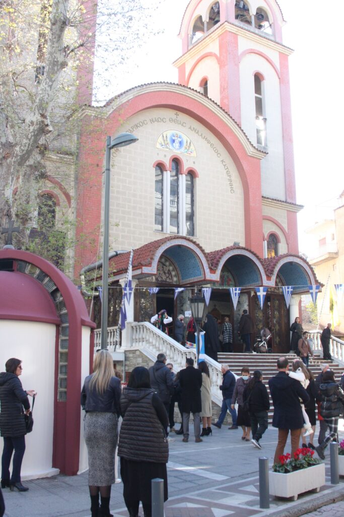 Τη Θεία Λειτουργία παρακολούθησαν οι Βουλευτές της Πιερίας κ.κ. Φώντας Μπαραλιάκος, Άννα Μάνη-Παπαδημητρίου, Σάββας Χιονίδης, η Αντιπεριφερειάρχης κα Σοφία Μαυρίδου, ο Δήμαρχος Κατερίνης κ. Κωνσταντίνος Κουκοδήμος, εκπρόσωποι των Ενόπλων Δυνάμεων, φορείς της Κατερίνης και πλήθος κόσμου που με ευλάβεια προσκύνησαν την εικόνα της πολιούχου Αγίας Αικατερίνης.