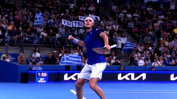Absolute SCENES tonight in Sydney as 🇬🇷 @steftsitsipas levels the match at a set a piece!#UnitedCup pic.twitter.com/CACoKeaA33