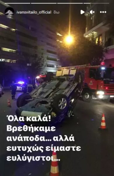 Το πρωί της Παρασκευής (13/1) ο ίδιος μίλησε στην κάμερα της εκπομπής «Πρωινό μας» και εξήγησε τι συνέβη. Όπως είπε, πριν φτάσει σπίτι του, βγαίνοντας από ένα τούνελ, υπήρχε ένα ολισθηρό κομμάτι λόγω της βροχής και το αυτοκίνητο του έφυγε στη στροφή, έπεσε πάνω σε ένα σταθμευμένο όχημα, το καβάλησε και γύρισε τούμπα. Για τον απεγκλωβισμό του χρειάστηκε η επέμβαση της πυροσβεστικής υπηρεσίας.