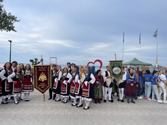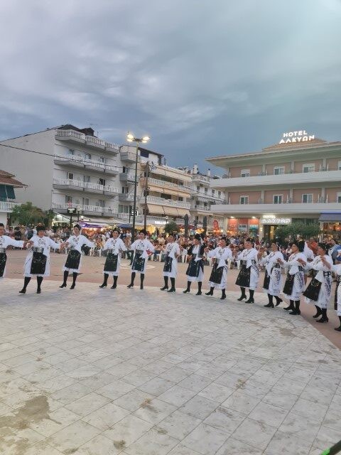 Αμέσως μετά στην κεντρική πλατεία της Παραλίας εκτυλίχθηκε μία ξεχωριστή ελληνική βραδιά, με άρωμα Κατερίνης και Ελλάδας, με παραδοσιακούς χορούς από τον Μορφωτικό-Εξωραϊστικό Σύλλογο Παραλίας και συναυλία της Πολυτονικής Ορχήστρας Κατερίνης. Μία ελληνική βραδιά με άρωμα Κατερίνης και Ελλάδας που προκάλεσε τον ενθουσιασμό των επισκεπτών κι ας έληξε γρηγορότερα λόγω της μπόρας