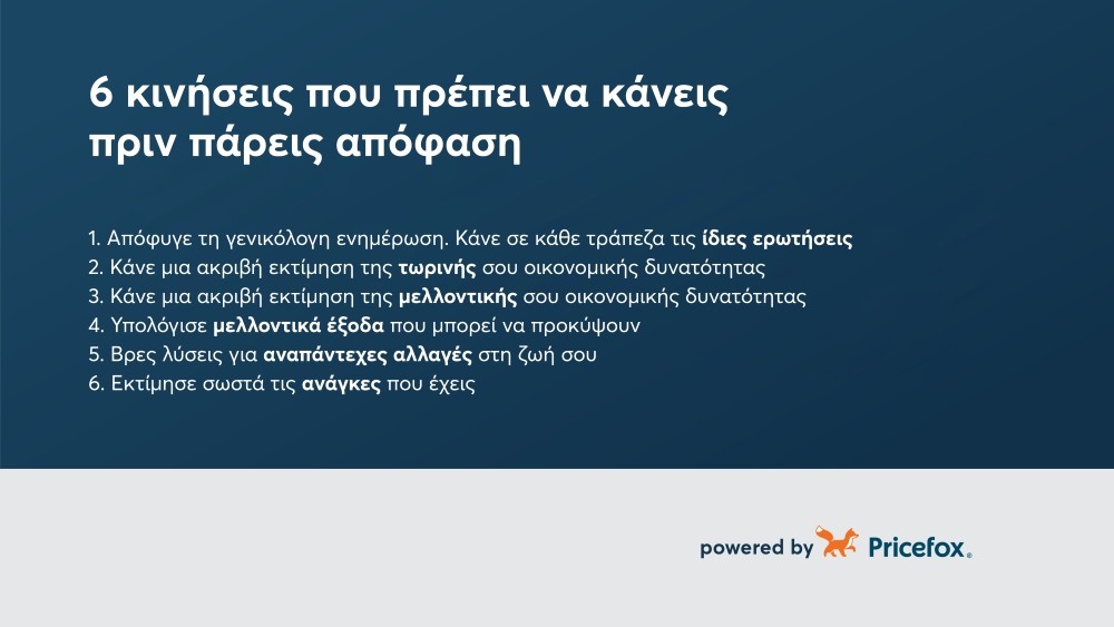Με αφορμή ότι η αγορά ακινήτων σιγά σιγά αναθερμαίνεται και ο κόσμος ψάχνει να αγοράσει το δικό του σπίτι, το Pricefox, έφτιαξε έναν απλό οδηγό για να σε καθοδηγήσει στην περίπτωση που θέλεις να αποκτήσεις ένα στεγαστικό δάνειο.