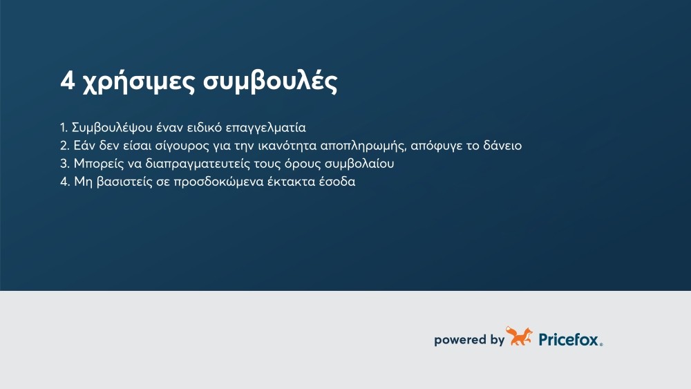 - Εάν δεν είσαι σίγουρος για την ικανότητα αποπληρωμής, απόφυγε το δάνειο.