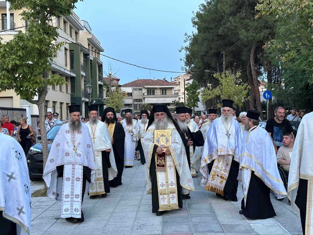 Σύμφωνα με παλαιό λειτουργικό έθιμο, μεταφέρθηκε για το Δεκαπενταύγουστο, από την ομώνυμη Ιερά Μονή του Ολύμπου στην Κατερίνη τεμάχιο από το λείψανο του Οσίου και Θεοφόρου Πατρός ημών Διονυσίου, Προστάτη και Εφόρου πάσης Πιερίας.