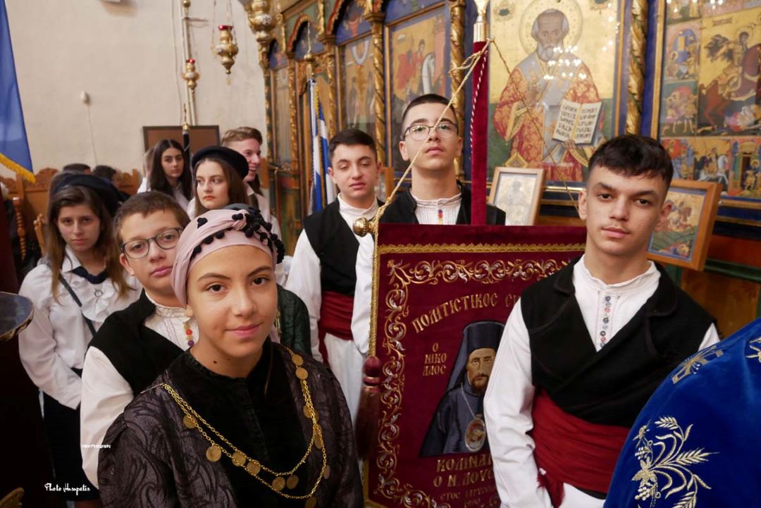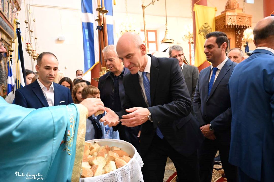 Το πρωί ήχησαν χαρμόσυνα οι καμπάνες, ενώ στον ιστορικό Ιερό Ναό Αγίου Δημητρίου τελέστηκε ο Όρθρος και Αρχιερατική Θ. Λειτουργία, προεξάρχοντας του Αρχιμανδρίτη Διονυσίου Γκόλια και τη συμμετοχή των δύο εφημερίων του Κολινδρού π. Παναγιώτη και π. Χρήστο.