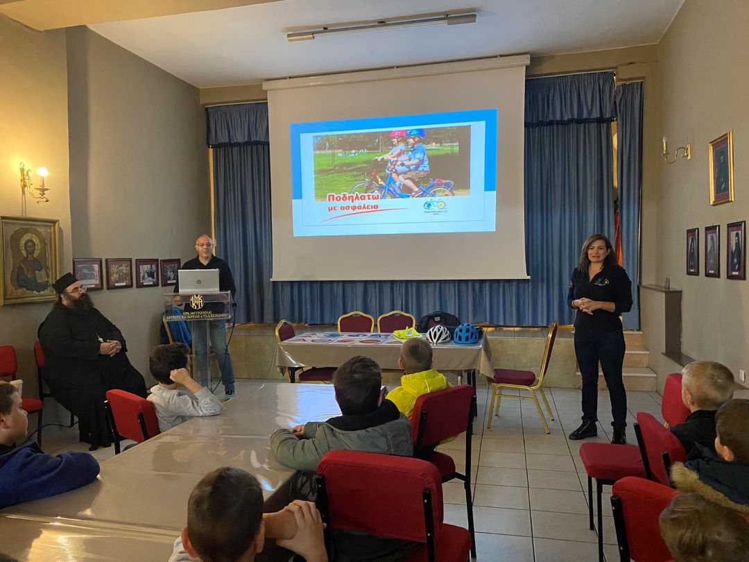 Στα παιδιά έγινε αναφορά των σημαντικών κανόνων του Κ.Ο.Κ. που αφορούν το ποδήλατο, δόθηκαν οδηγίες για την ασφαλή μετακίνηση μέσα στην πόλη και στο τέλος ακολούθησε συζήτηση για τα οφέλη από την ποδηλασία για την υγεία και το περιβάλλον.