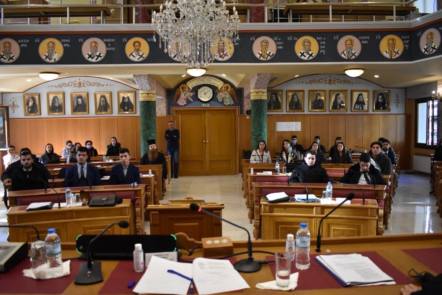 Παράλληλα, ξεναγήθηκαν από τον Αρχιμ. Σεραφείμ Λεβέντη στις Αίθουσες συνεδριάσεως τόσο της Ιεραρχίας όσο και της Διαρκούς Ιεράς Συνόδου, ενώ υπήρξε γνωριμία με τις Διοικητικές Υπηρεσίες. Η επίσκεψη ολοκληρώθηκε με την περιήγηση στα Γραφεία των Συνοδικών Επιτροπών και Υπηρεσιών, καθώς και της Βιβλιοθήκης, με τη συνοδεία του εκ Κατερίνης ορμώμενου κ. Ευάγγελου Μαρινόπουλου, Στελέχους του Γραφείου Εξωτερικής Ιεραποστολής.