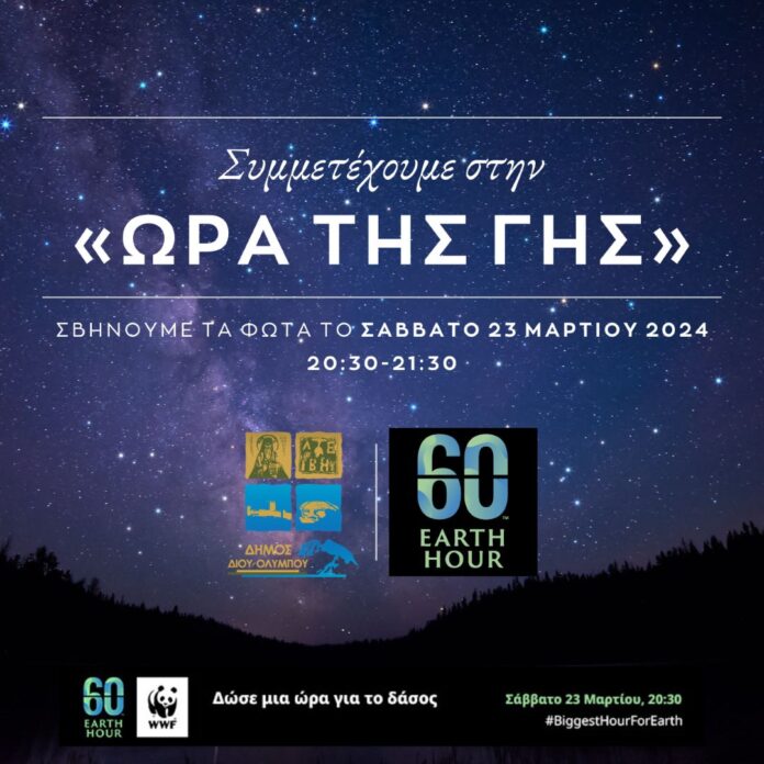 Δήμος Δίου-Ολύμπου: Σβήνουμε τα φώτα και συμμετέχουμε στην «Ώρα της Γης» το Σάββατο 23 Μαρτίου 2024 (20:30-21:30)