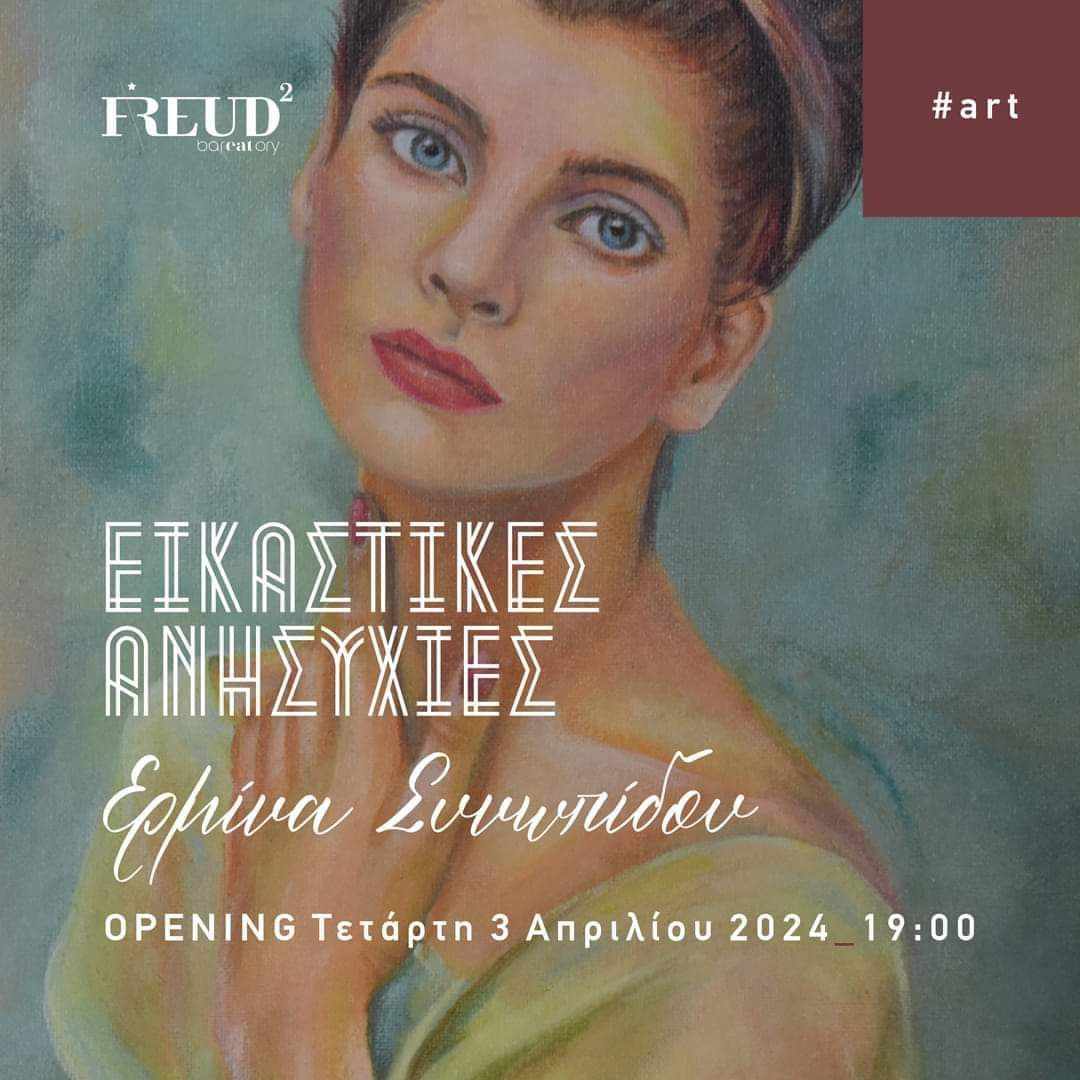 Από την Τετάρτη 3 Απριλίου ξεκίνησε η Έκθεση της Ερμίνας Συνωπίδου με τίτλο “Εικαστικές Ανησυχίες”, στο καφέ FREUD, η οποία θα διαρκέσει μέχρι το Πάσχα.