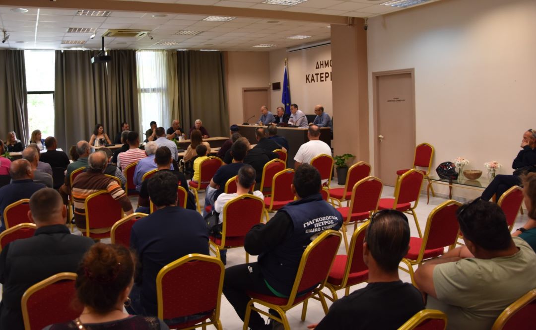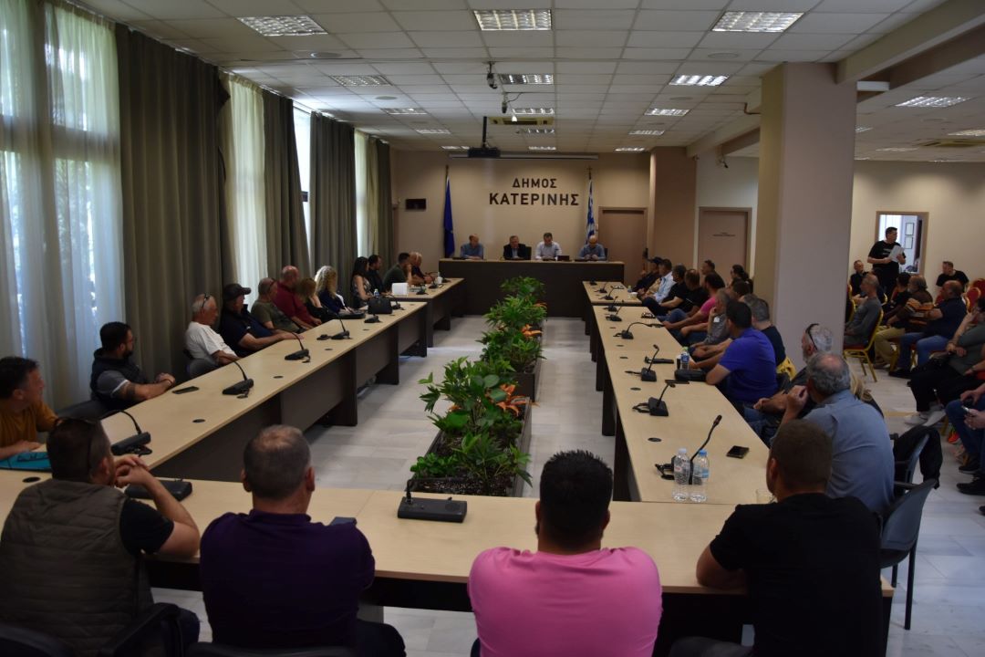 Μία πρώτη ενημέρωση όλων των Υδρονομέων του Δήμου Κατερίνης, για την ορθή παράδοση ωρών άρδευσης  και ευρύτερα για τα καθήκοντά τους, τη διαχείριση – λειτουργία των Δημοτικών Αρδευτικών Υποδομών, έγινε στο Δημαρχείο, από τον Δήμαρχο Κατερίνης, Γιάννη Ντούμο και τον αντιδήμαρχο Κοινοτήτων, Χρήστο Μπογιατζή, παρουσία προέδρων των Τοπικών Κοινοτήτων, συνεργατών του Δημάρχου, στελεχών του Δήμου κ.ά.