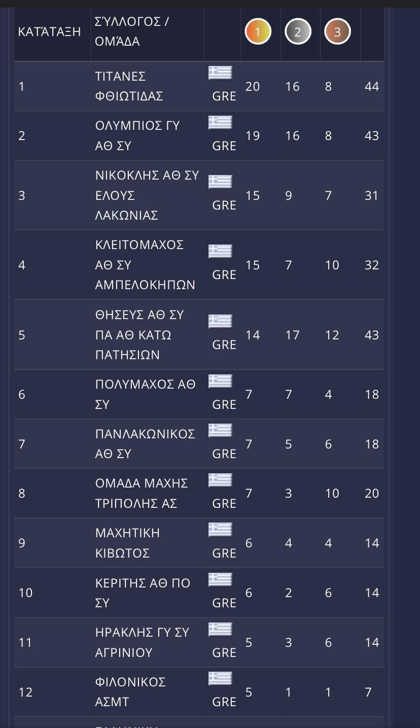 2ος στην τελική κατάταξη από όλα τα σωματεία της Ελλάδος για το 2024 στις ηλικίες 12 ως +21 ετών σε χρυσά και σε σύνολο μεταλλίων στο Πανελλήνιο πρωτάθλημα παίδων- εφήβων-νέων και ανδρών-γυναικών Παγκρατίου αθλήματος.