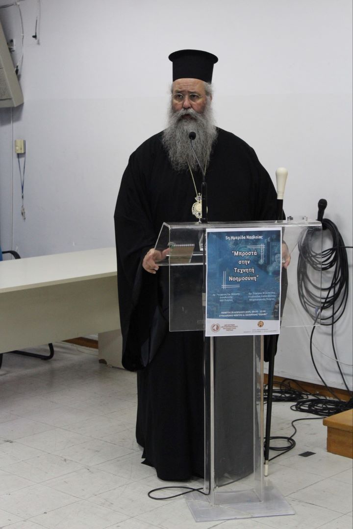 Ο Σεβασμιώτατος Μητροπολίτης Κίτρους. Κατερίνης και Πλαταμώνος κ. Γεώργιος, στον εναρκτήριο χαιρετισμό του, επισήμανε την αξία της τεχνολογικής προόδου, αλλά και τις παγίδες που ελοχεύει, ενώ ευχαρίστησε τους εκλεκτούς εισηγητές για την ετοιμασία των εισηγήσεών τους καθώς και όλους τους μαθητές που συμμετείχαν.
