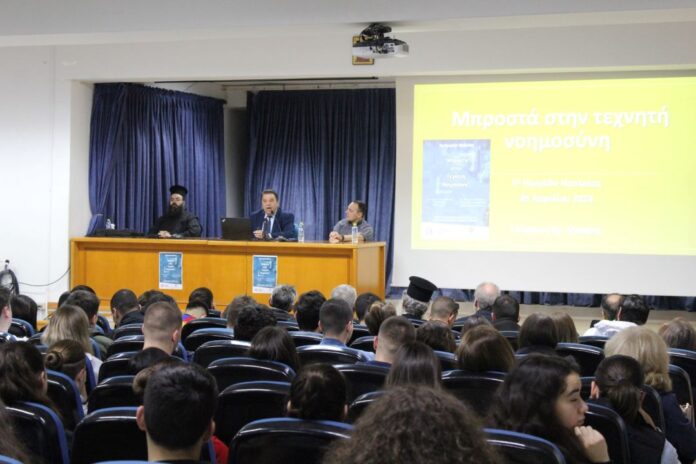 Κατόπιν, πραγματοποιήθηκε η πρώτη εισήγηση από τον Δρ κ. Γεώργιο Μακρή, Διευθυντή της Δευτεροβάθμιας Εκπαίδευσης Πιερίας, ο οποίος ανέπτυξε διάφορες πτυχές της Τεχνητής Νοημοσύνης, τα πλεονεκτήματα και τα μειονεκτήματά της, καθώς και τις προκλήσεις που παρουσιάζει η Διαλογική Τεχνητή Νοημοσύνη.