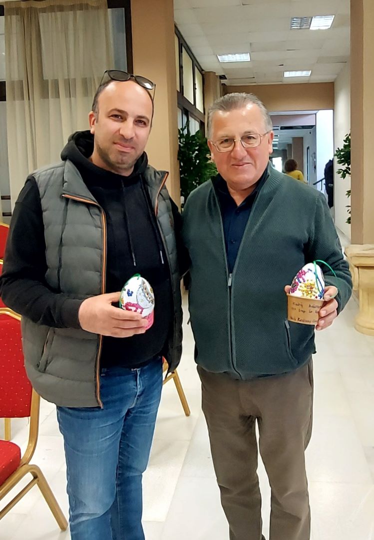 Τέλος, ο κος Ντούμος και ο Αντιδήμαρχος Υπηρεσιών Προσχολικής Αγωγής & Δημιουργικής Απασχόλησης Δ. Κατερίνης, Μιχάλης Γεωργιάδης, αντάλλαξαν ευχές για τις Άγιες ημέρες του Πάσχα με τις Διευθύντριες του 5ου Βρεφονηπιακού Σταθμού Δ. Κατερίνης και του Βρεφονηπιακού Σταθμού Περίστασης, οι οποίες δώρισαν πασχαλινές κατασκευές που δημιούργησαν τα παιδιά των δομών.