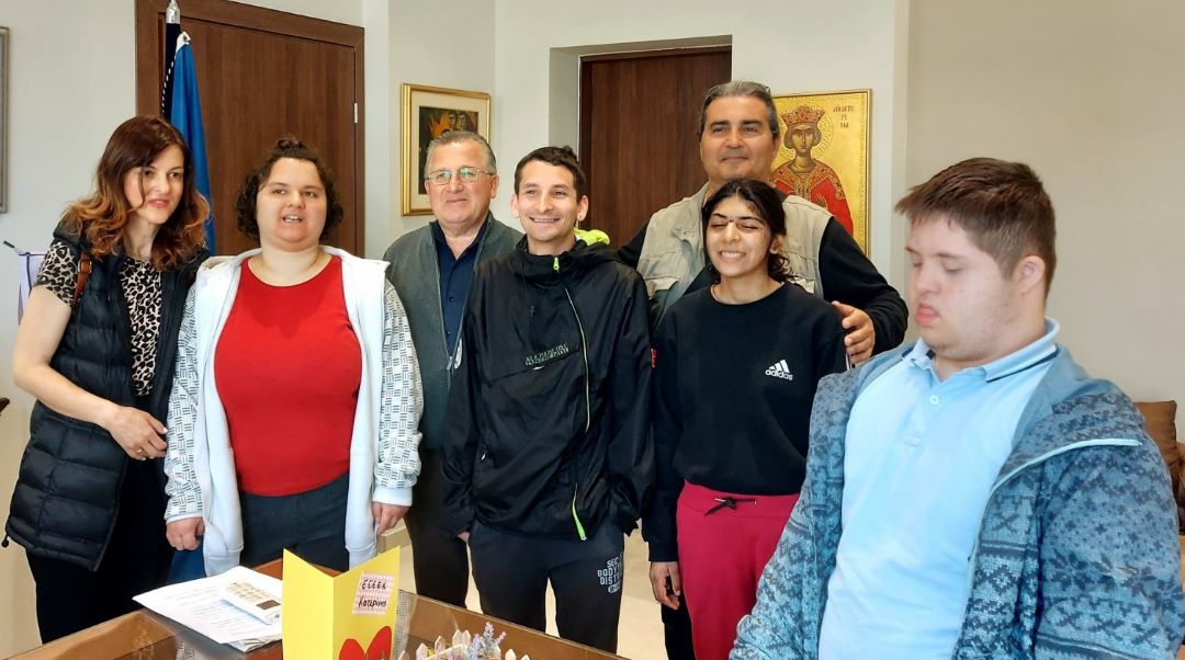 Παράλληλα, τον Δήμαρχο επισκέφθηκαν στο γραφείο του, τα παιδιά του Εργαστηρίου Ειδικής Επαγγελματικής Εκπαίδευσης και Κατάρτισης Κατερίνης, συνοδευόμενα από τους εκπαιδευτικούς τους. Τα παιδιά χάρισαν στον κ. Ντούμο χειροποίητες πασχαλινές δημιουργίες που με πολύ μεράκι και φροντίδα δημιούργησαν.