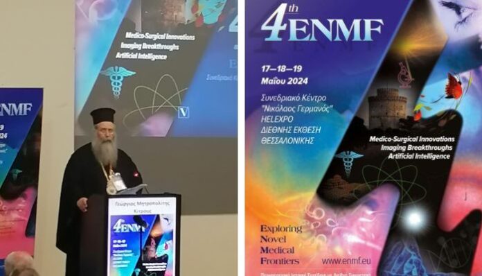 Πιο συγκεκριμένα, ο Σεβασμιώτατος Ποιμενάρχης κ. Γεώργιος και με την ιδιότητά του ως Καθηγητής του Τμήματος Θεολογίας του Αριστοτελείου Πανεπιστημίου Θεσσαλονίκης συμμετείχε στο 4ο ENMF Πολυθεματικό Ιατρικό Συνέδριο που έλαβε χώρα από 17 έως 19 Μαΐου στο Συνεδριακό Κέντρο «Νικόλαος Γερμανός» στη HELEXPO-Διεθνή Έκθεση Θεσσαλονίκης.