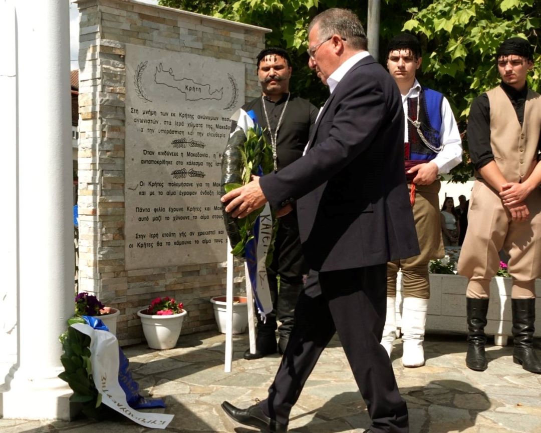 Ακολούθησε κατάθεση στεφάνων στο Μνημείο των Κρητών Πεσόντων, από: τον Ευρωβουλευτή της Νέας Δημοκρατίας, Μανώλη Κεφαλογιάννη, τον Δήμαρχο Κατερίνης, Ιωάννη Ντούμο, την Περιφερ. Σύμβουλο, Χρυσαυγή Δριστά, εκπρόσωπο της Διεύθυνσης Αστυνομίας Πιερίας, εκπρόσωπο της Διεύθυνσης Πυροσβεστικών Υπηρεσιών Ν.Πιερίας, τον πρόεδρο του Συλλόγου Κρητών «ΟΙ ΣΤΑΥΡΑΕΤΟΙ» Κώστα Μανιουδάκη, τον Απόστολο Κυριτσάκη, Ομότιμο Καθηγητή του Διεθνούς Πανεπιστημίου Ελλάδος (ΔΙ.ΠΑ.Ε), από εκπροσώπους των πολιτιστικών συλλόγων: Ένωση Ποντίων Πιερίας, Μικρασιατών, Θρακική Εστία Κατερίνης, Κάτω Μηλιάς “ΟΙ ΛΑΖΑΙΟΙ”, Ανδρομάχης, «Άγιος Κοσμάς ο Αιτωλός».