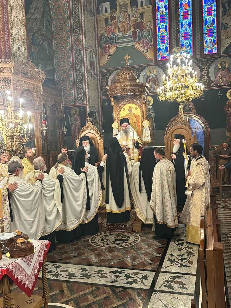 Συμπροσευχήθηκαν οι Σεβασμιώτατοι Μητροπολίτες Κασσανδρείας και Πολυγύρου κ. Νικόδημος, Αππολωνίας και Φίερι κ. Νικόλαος (Εκκλησία Αλβανίας), ο Θεοφιλέστατος Επίσκοπος Σαλώνων κ. Ιγνάτιος και ο οικείος Ποιμενάρχης κ. Γεώργιος.
