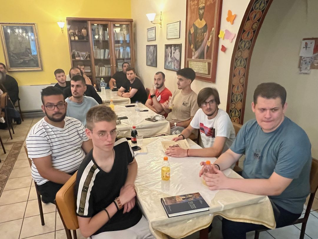 Η μετεκδρομική συνάντηση πραγματοποιήθηκε στο Πνευματικό Κέντρου του Ιερού Ναού Αγίας Τριάδος Κατερίνης , με τη συμμετοχή κληρικών και πενήντα περίπου νέων, στελεχών του Γραφείου Νεότητας, που συμμετείχαν στο προσκύνημα.