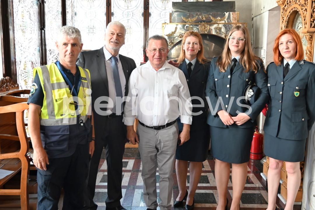 Η Δοξολογία τελέστηκε στον Ιερό Ναό Θείας Αναλήψεως στις 11.00 το πρωί με την παρουσία του Αστυνομικού Διευθυντή Πιερίας, Γεωργίου Κουκουσέλα, αξιωματικών, υπαξιωματικών και αστυνομικών, καθώς επίσης και με την παρουσία εκπροσώπων του Λιμενικού και της Πυροσβεστικής.