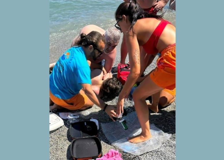Έσπευσε στο σημείο και είδε ότι το παιδί ανέπνεε, ενώ ταυτόχρονα ήρθαν για βοήθεια οι ναυαγοσώστες από το σκάφος περιπολίας.
