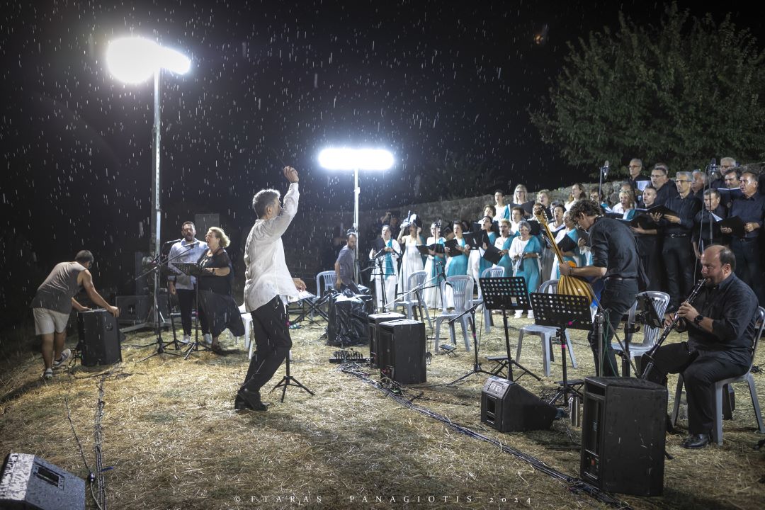 Ο μαέστρος της Εστίας Ευθύμης Μαυρίδης, ξεπερνώντας για ακόμη μια φορά κάθε προσδοκία, ενέπνευσε χορωδούς, μουσικούς και κοινό με το κέφι και τη ζωντάνια των μουσικών του επιλογών. Κορυφαία υπήρξε μάλιστα η στιγμή που παρά την ισχυρή βροχόπτωση όλο το μουσικό σχήμα, οι σολίστες και η χορωδοί συνέχιζαν να τραγουδούν καταχειροκροτούμενοι από το συγκινημένο κοινό που παρέμενε στη θέση του.