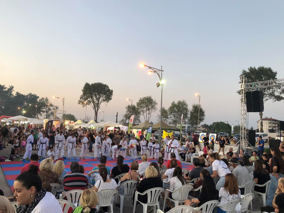 Στις 19:30 οι αθλητές της Σχολής Karate Budokan Dojo του Σταύρου Σταυριανίδη θα παρουσιάσουν τεχνικές Καράτε. Στις 20:00 – Κεντρικό Περίπτερο Εμποροπανήγυρης (είσοδος εγκαταστάσεων) – θα πραγματοποιηθεί “ΠΑΡΟΥΣΙΑΣΗ ΠΡΩΤΩΝ ΒΟΗΘΕΙΩΝ” από Πιστοποιημένους Εκπαιδευτές του Περιφερειακού Τμήματος του Ελληνικού Ερυθρού Σταυρού Κατερίνης, ενώ την ίδια ώρα το Bootcamp Fitness Center θα παρουσιάσει πρόγραμμα χορού. Στις 21:30 οι Artifacts θα δυναμώσουν τους ρυθμούς “for those about to rock” και στις 22:00 οι Drapetes με τον Κώστα και την Δήμητρα Σάββα θα συνεχίσουν με Hip Hop, Reggae & Pop.