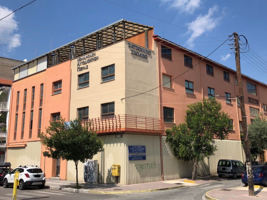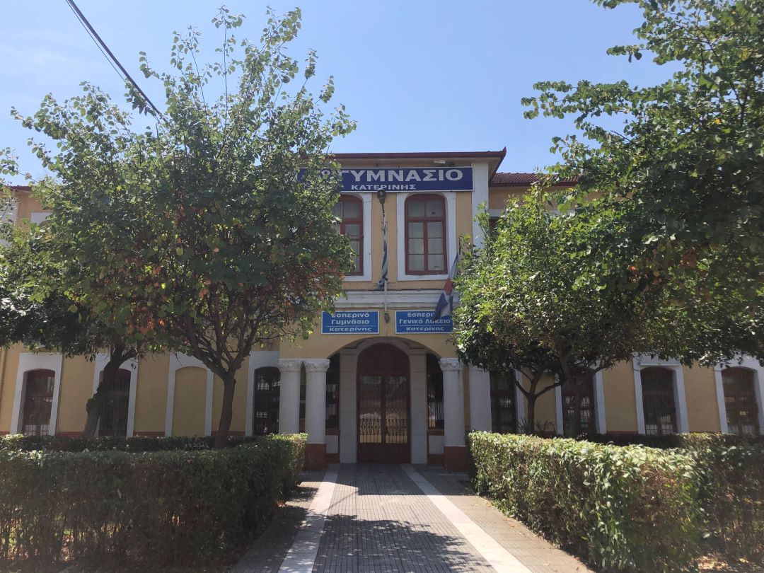 H Ελληνική Κοινότητα Κατερίνης έχτισε αυτό το έργο τέχνης το 1905 με πρωτοβουλία του τότε Επισκόπου Κίτρους, Παρθενίου Βαρδάκα. Στο παρελθόν λειτούργησε ως εκπαιδευτήριο (1ο Δημοτικό Σχολείο Κατερίνης). Σήμερα φιλοξενεί εκθέσεις και εκδηλώσεις. Από αρχιτεκτονικής άποψης, χαρακτηρίζεται από απλότητα και συμμετρία. Ακολουθεί τα κλασικιστικά πρότυπα και αποσκοπεί σε μια αισθητική η οποία τονίζει την αρμονία και τον μνημειακό χαρακτήρα του, ακριβώς όπως αρμόζει σε ένα κτίριο με κύρος. Έχει έναν όροφο, με ημιυπόγειο και τετράρριχτη στέγη. Τέλος, τα δωμάτιά του είναι ίσα τοποθετημένα στις δύο πλευρές του κεντρικού διαδρόμου.