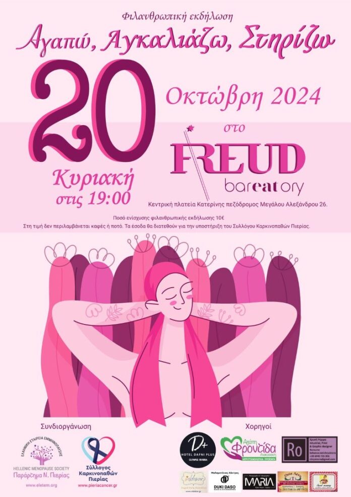 Γυναίκες που κέρδισαν τη μάχη, γυναίκες που παλεύουν καθημερινά να μείνουν όρθιες. Όλες τους όμως αγωνίζονται με δύναμη και αξιοπρέπεια. Ο λόγος για τη φιλανθρωπική εκδήλωση «Αγαπάω – Αγκαλιάζω – Στηρίζω», που διοργανώνει η ΕΛΕΤΕΜ, την Κυριακή 20/10 & ώρα 19:00 στο FREUD – bareatory (κεντρική πλατεία – πεζόδρομος Μ. Αλεξάνδρου 26).