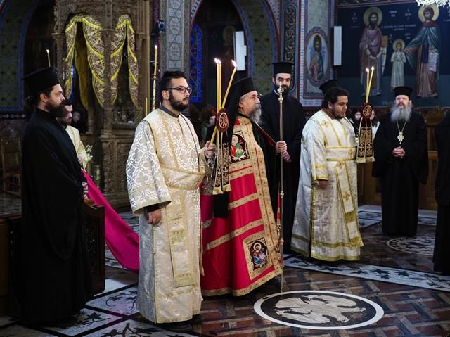 Κατά τον Όρθρο και τη Θ. Λειτουργία έψαλαν πολυμελείς Χοροί νέων που διηύθυναν οι Ιεροψάλτες του Καθεδρικού Ναού με τη συμμετοχή πολλών μελών της Χορωδίας «Βυζαντινοί Μελωδοί».