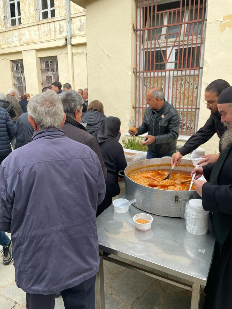 Μετά το πέρας της Θείας Λειτουργίας, οι πιστοί είχαν την ευκαιρία να συμμετάσχουν σε ένα παραδοσιακό κέρασμα, όπου τους προσφέρθηκε φασολάδα, ένα φαγητό που τιμά την παράδοση και τη φιλοξενία της περιοχής.
