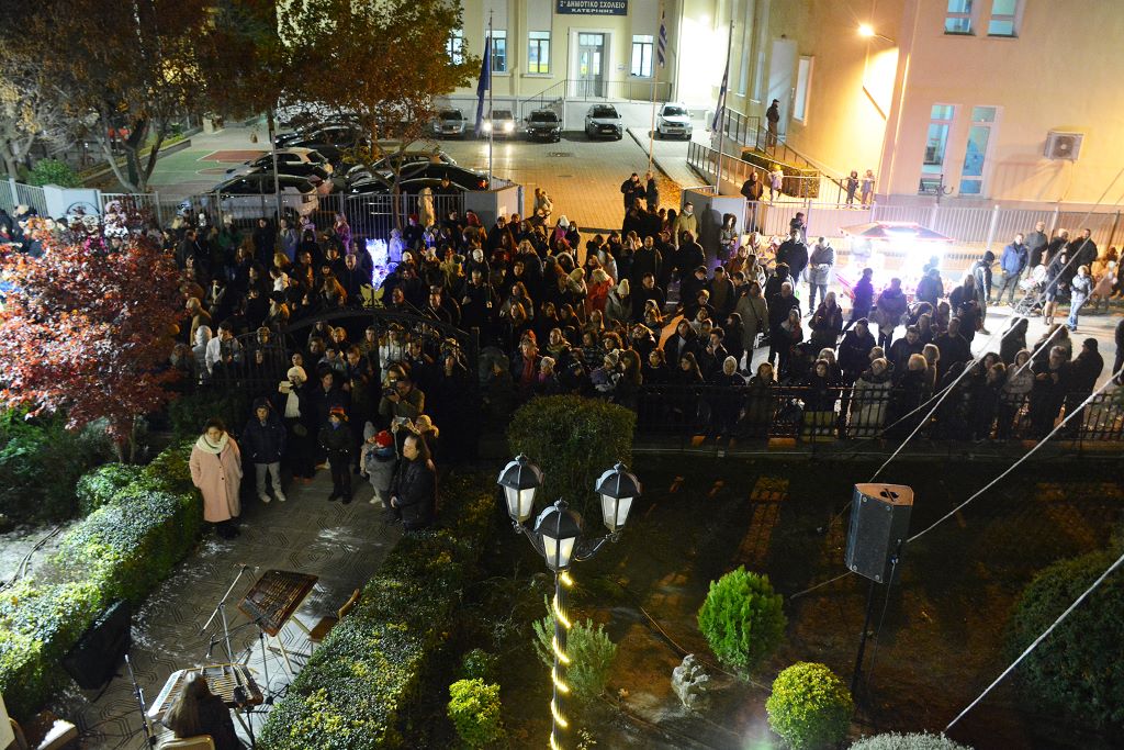 Το βράδυ της Κυριακής 24 Νοεμβρίου, μετά τον πανηγυρικό Αρχιερατικό Εσπερινό της Πολιούχου Αγίας Αικατερίνης, μπροστά στο Μητροπολιτικό Μέγαρο Κατερίνης, πραγματοποιήθηκε εορταστική Χριστουγεννιάτικη εκδήλωση και φωταγώγηση του φυσικού κέδρου και της φάτνης που βρίσκεται στην αυλή του Επισκοπείου.
