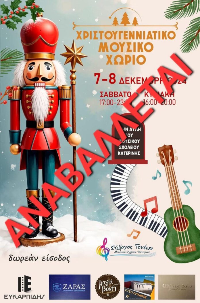 Μουσικό Σχολείο: Αναβάλλεται το “Χριστουγεννιάτικο Μουσικό Χωριό” λόγω καιρικών συνθηκών