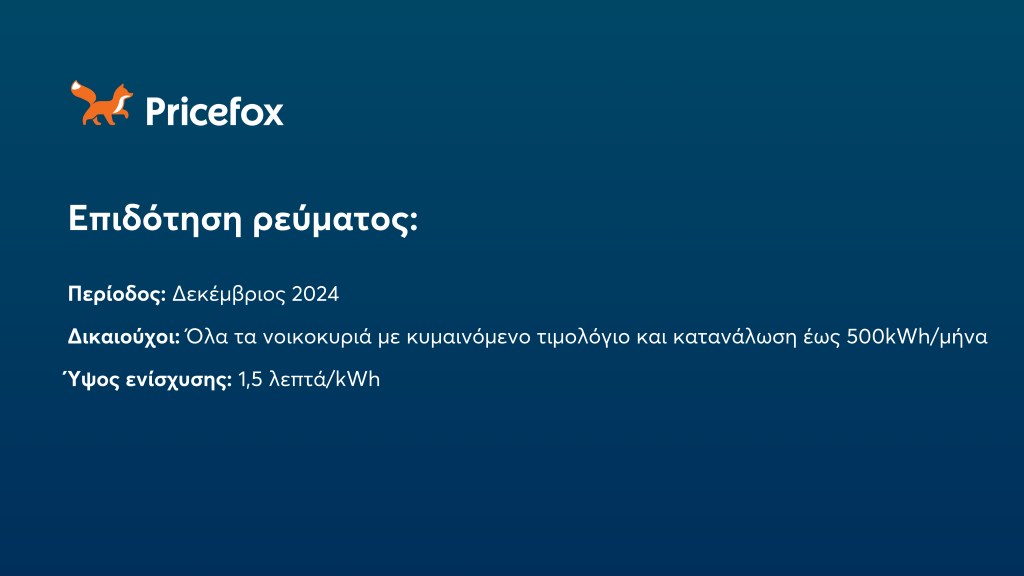 Η επιδότηση θα φανεί απευθείας στο λογαριασμό ρεύματος του Δεκεμβρίου.