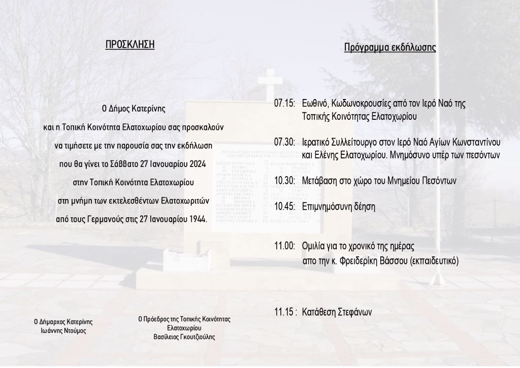 Αρχική Κατερίνη Δήμος Κατερίνης: Εκδήλωση Μνήμης & Τιμής θυμάτων κατοχής στο Ελατοχώρι