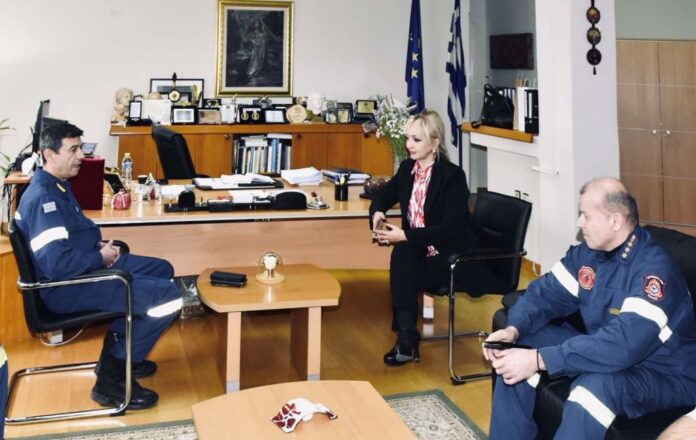 Η Αντιπεριφερειάρχης Πιερίας, κα Σοφία Μαυρίδου δέχθηκε σήμερα το πρωί στο γραφείο της στην Περιφερειακή Ενότητα Πιερίας, τον Συντονιστή Επιχειρήσεων Κεντρικής Μακεδονίας, Ανατολικής Μακεδονίας και Θράκης, Υποστράτηγο Π.Σ., Παναγιώτη Μπαθρέλλο και τον Διοικητή Πυροσβεστικών Υπηρεσιών Νομού Πιερίας, Πύραρχο, Δημήτριο Κραγιόπουλο. Η συζήτηση στράφηκε γύρω από το πολύπλευρο έργο του πυροσβεστικού σώματος και την αποτελεσματική διαχείριση των εκτάκτων αναγκών που προκύπτουν από καιρικά φαινόμενα, αλλά και από έκτακτα γεγονότα που απαιτούν την άμεση συνδρομή και την παρέμβαση της πυροσβεστικής.