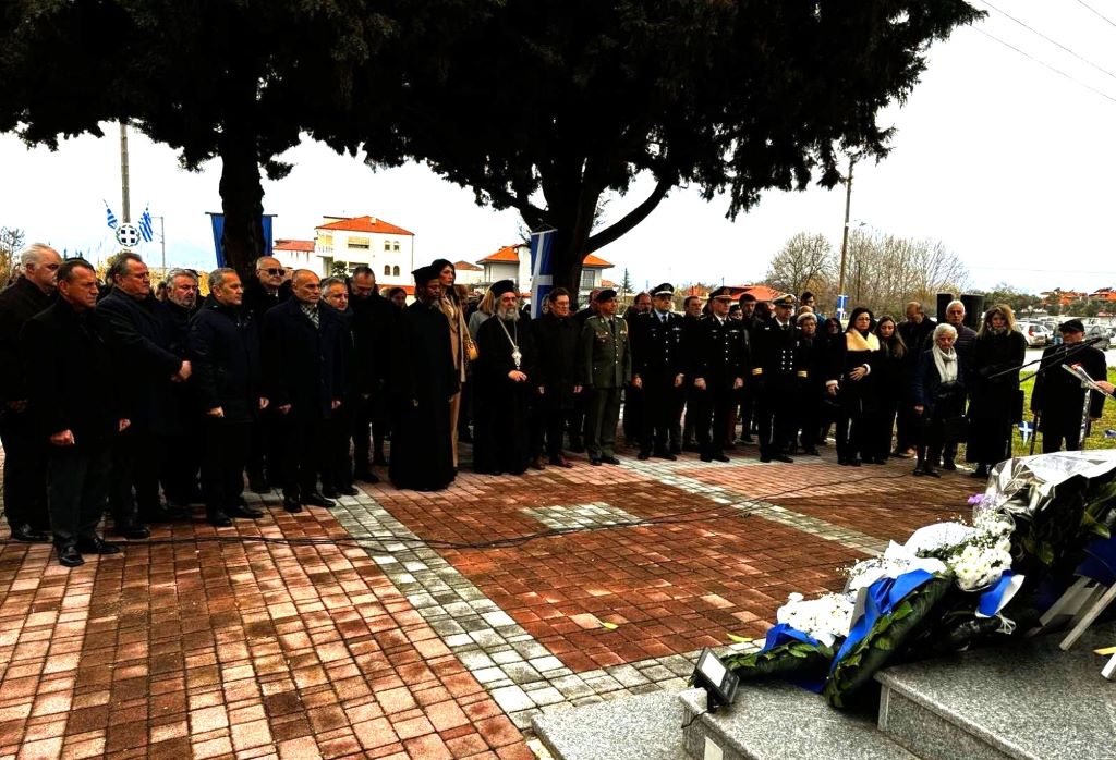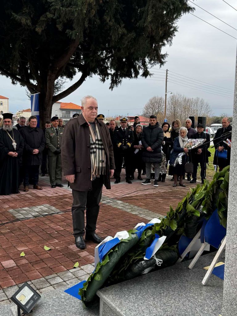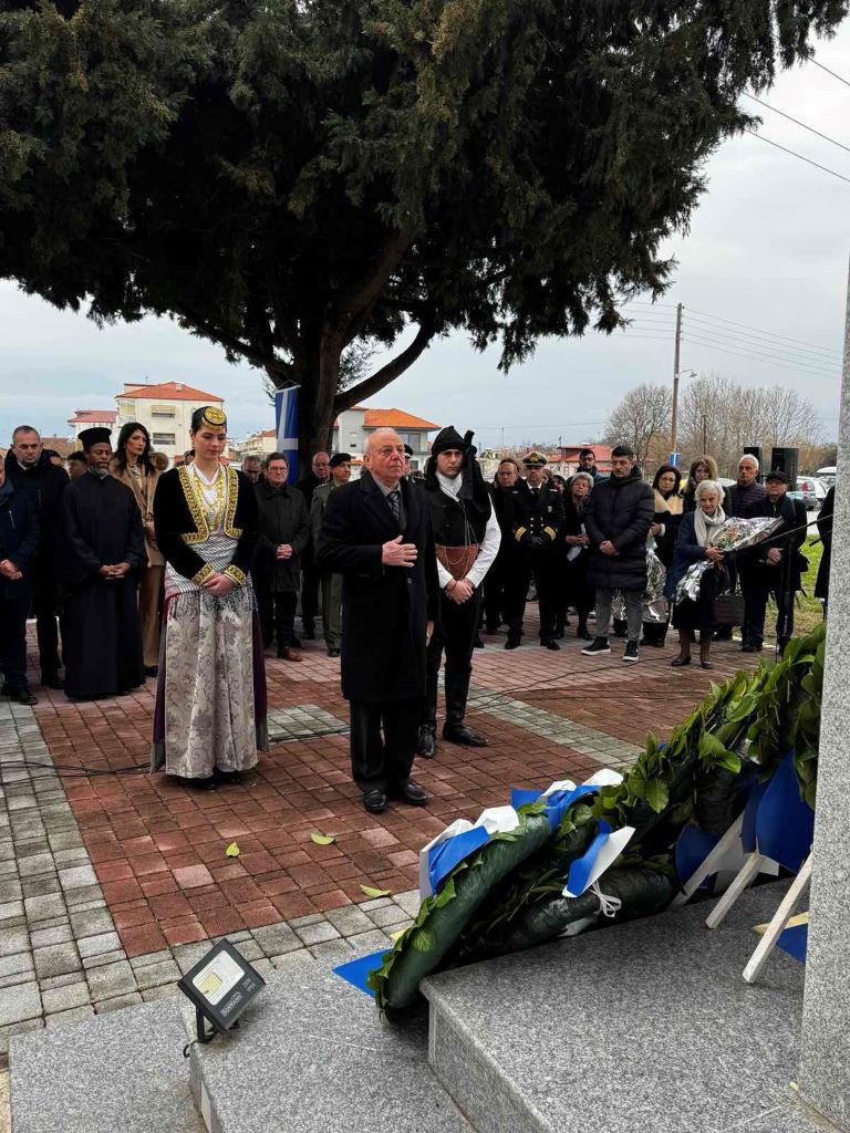 Στην εκδήλωση, που διοργάνωσε ο Δήμος Κατερίνης, στεφάνι κατέθεσαν: ο Βουλευτής Πιερίας, Κομνηνός Δελβερούδης (ως εκπρόσωπος της Βουλής των Ελλήνων), εκ μέρους του Δημάρχου Κατερίνης, Ι. Ντούμου – ο Πρόεδρος του Δημοτικού Συμβουλίου Κατερίνης, Χαράλαμπος Χρ. Μπρουσκέλης, εκ μέρους της Περιφερειακής Ενότητας Πιερίας, ο Περιφ. Σύμβουλος, (Τομεάρχης Επιστημονικών Φορέων Κ. Μακεδονίας), Αθανάσιος Λιακόπουλος, καθώς και εκπρόσωποι: του Δήμου Ελασσόνας (αναπλ. Δημάρχου, Δημήτριος Καρανίκας) & της Δημοτικής Κοινότητας Λιβαδίου Ελασσόνας (πρόεδρος, Κων/νος Ψαλίδας).