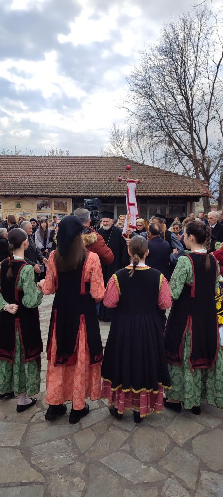 Με το πέρας της Θείας Λειτουργίας, εξερχόμενοι του Ιερού Ναού όλοι οι συμμετέχοντες, με επικεφαλής τον π. Δημήτριο, ο οποίος έφερε στο χέρι του το παραδοσιακό φλάμπουρο, δείγμα αδελφοσύνης, ενότητας και αγάπης των κατοίκων του Δίου, με τη συνοδεία παραδοσιακών οργάνων και χορευτικών συλλόγων αναβίωσαν το έθιμο. Όπως κάθε χρόνο, οι παρευρισκόμενοι απόκρεψαν απολαμβάνοντας εύγεστες μερίδες με ζυγούρι και γίδα, χειροποίητες πίτες και άλλα τοπικά εδέσματα, προσφορά της Ενορίας.